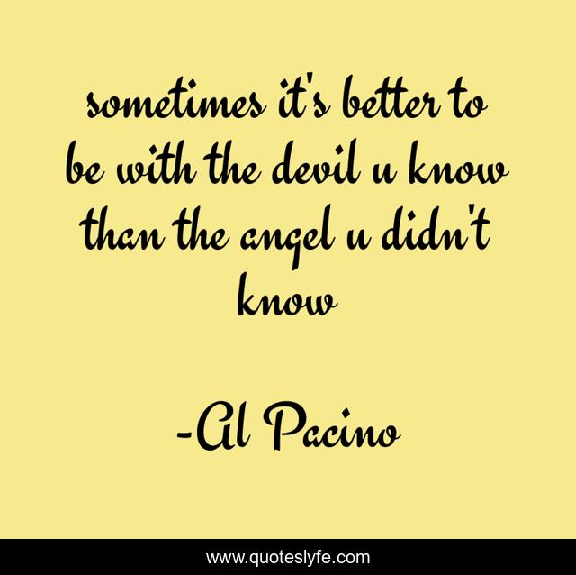 This page presents the quote "sometimes it's better to be with the devil u know than the angel u didn't know". Author of this quote is Al Pacino. .