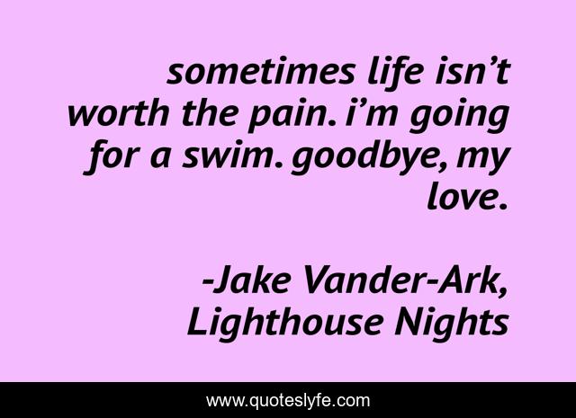 This page presents the quote "sometimes life isn’t worth the pain. i’m going for a swim. goodbye, my love.". Author of this quote is Jake Vander-Ark, Lighthouse Nights. This quote is about teen, tattoo, drowning, suicide, romance, death, thriller,.