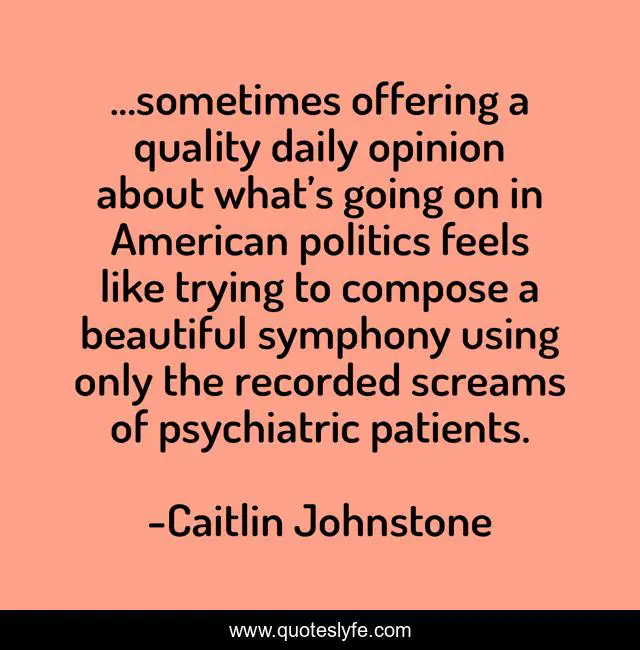 This page presents the quote "...sometimes offering a quality daily opinion about what’s going on in American politics feels like trying to compose a beautiful symphony using only the recorded screams of psychiatric patients.". Author of this quote is Caitlin Johnstone. This quote is about politics, america, writing,.
