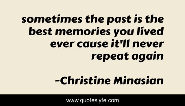 This page presents the quote "sometimes the past is the best memories you lived ever cause it'll never repeat again". Author of this quote is Christine Minasian. This quote is about past, memory, sad,.