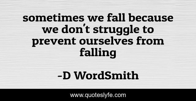 This page presents the quote "sometimes we fall because we don't struggle to prevent ourselves from falling". Author of this quote is D WordSmith. This quote is about enthusiasm, life, struggle, inspirational,.