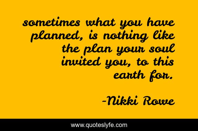 This page presents the quote "sometimes what you have planned, is nothing like the plan your soul invited you, to this earth for.". Author of this quote is Nikki Rowe. This quote is about purpose, growth, soul, fate, destiny,.
