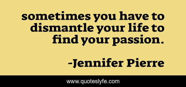 This page presents the quote "sometimes you have to dismantle your life to find your passion.". Author of this quote is Jennifer Pierre. This quote is about self-love, jennifer-pierre, inspire,.