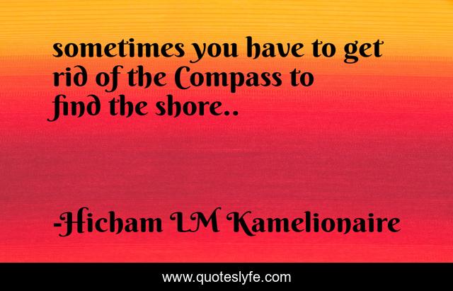 This page presents the quote "sometimes you have to get rid of the Compass to find the shore..أحيانا عليك التخلص من البوصلة لتجد الشاطئ". Author of this quote is Hicham LM Kamelionaire. This quote is about confidence, positive, motivational, optimistic, inspirational, enthusiasm,.