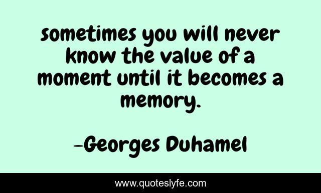 This page presents the quote "sometimes you will never know the value of a moment until it becomes a memory.". Author of this quote is Georges Duhamel. .