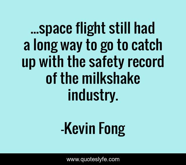 This page presents the quote "...space flight still had a long way to go to catch up with the safety record of the milkshake industry.". Author of this quote is Kevin Fong. This quote is about science, funny, comedy, space,.