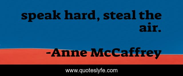 This page presents the quote "speak hard, steal the air.". Author of this quote is Anne McCaffrey. This quote is about ya-adult, vampires, science-fiction, fantasy, inspirational, enthusiasm, faerie-paranormal-romance,.