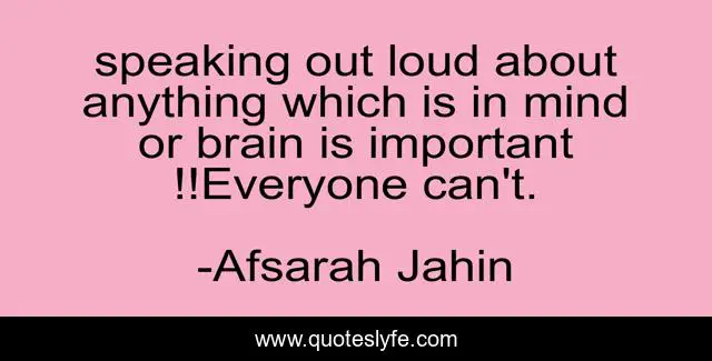 This page presents the quote "speaking out loud about anything which is in mind or brain is important !!Everyone can't.". Author of this quote is Afsarah Jahin. .