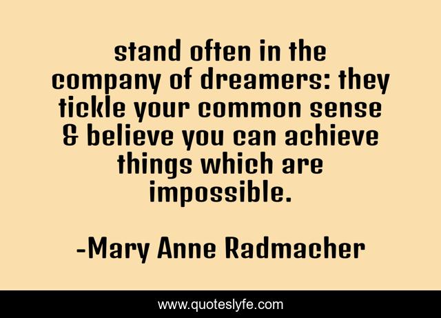 This page presents the quote "stand often in the company of dreamers: they tickle your common sense & believe you can achieve things which are impossible.". Author of this quote is Mary Anne Radmacher. .