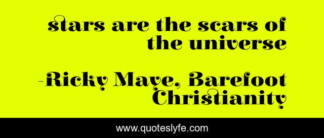 "Ricky Maye, Barefoot Christianity Quotes." Quoteslyfe.com, 2025. Mon. 08 Dec. 2025. <https://www.quoteslyfe.com/quote/stars-are-the-scars-of-the-universe-77526>.