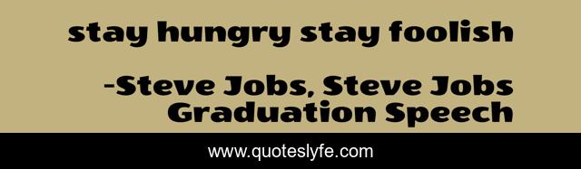 This page presents the quote "stay hungry stay foolish". Author of this quote is Steve Jobs, Steve Jobs Graduation Speech. This quote is about positive, confidence, motivational, optimistic,.