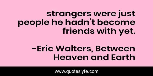 "Eric Walters, Between Heaven and Earth Quotes." Quoteslyfe.com, 2025. Tue. 09 Dec. 2025. <https://www.quoteslyfe.com/quote/strangers-were-just-people-he-hadn-t-126843>.