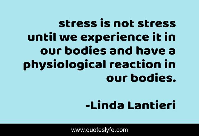 This page presents the quote "stress is not stress until we experience it in our bodies and have a physiological reaction in our bodies.". Author of this quote is Linda Lantieri. .