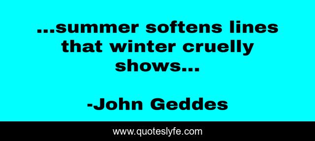 This page presents the quote "...summer softens lines that winter cruelly shows...". Author of this quote is John Geddes. This quote is about summer, winter, age, lines, face, softens,.