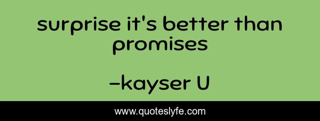 This page presents the quote "surprise it's better than promises". Author of this quote is kayser U. This quote is about relationships, love, teenagers, romance, people-relations, friendship, affection,.