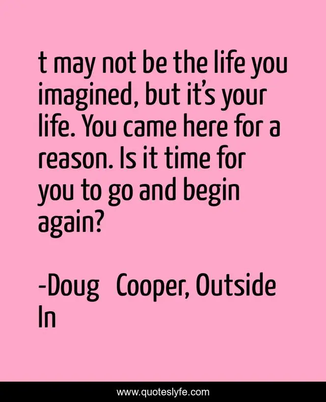 This page presents the quote "t may not be the life you imagined, but it’s your life. You came here for a reason. Is it time for you to go and begin again?". Author of this quote is Doug Cooper, Outside In. This quote is about fresh-start, new-beginning, life-experience, life-lessons,.
