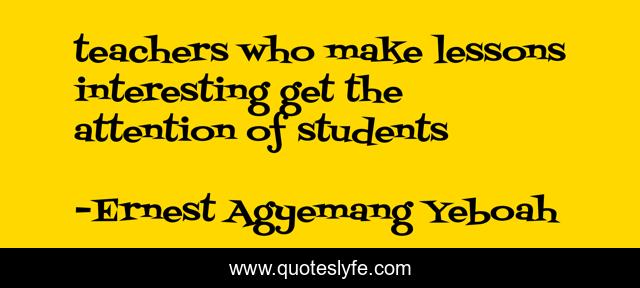 This page presents the quote "teachers who make lessons interesting get the attention of students". Author of this quote is Ernest Agyemang Yeboah. This quote is about teachers-and-learners, teaching-children, teaching,.