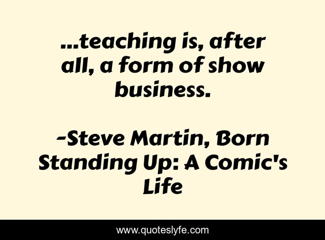 This page presents the quote "...teaching is, after all, a form of show business.". Author of this quote is Steve Martin, Born Standing Up: A Comic's Life. This quote is about teaching, acting, comedy, teacher, teachers,.