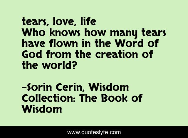 This page presents the quote "tears, love, life Who knows how many tears have flown in the Word of God from the creation of the world?". Author of this quote is Sorin Cerin, Wisdom Collection: The Book of Wisdom. This quote is about life, word, love, tears, world, affection,.