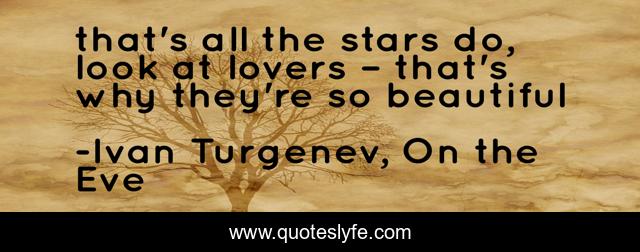 This page presents the quote "that's all the stars do, look at lovers – that's why they're so beautiful". Author of this quote is Ivan Turgenev, On the Eve. .