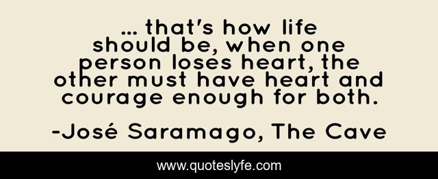 This page presents the quote "... that's how life should be, when one person loses heart, the other must have heart and courage enough for both.". Author of this quote is José Saramago, The Cave. This quote is about perseverance, love, affection,.