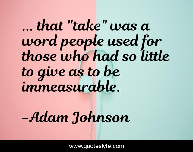 This page presents the quote "... that "take" was a word people used for those who had so little to give as to be immeasurable.". Author of this quote is Adam Johnson. .