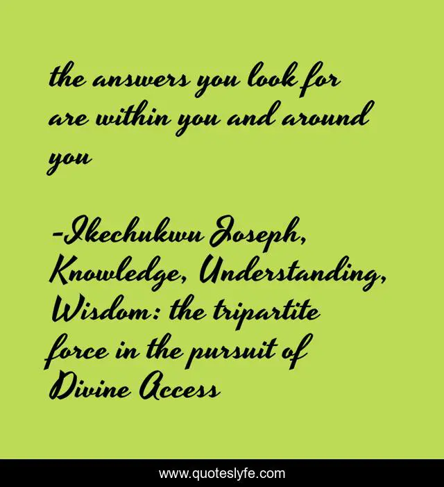 "Ikechukwu Joseph, Knowledge, Understanding, Wisdom: the tripartite force in the pursuit of Divine Access Quotes." Quoteslyfe.com, 2025. Fri. 05 Dec. 2025. <https://www.quoteslyfe.com/quote/the-answers-you-look-for-are-within-31651>.