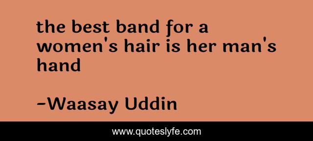 This page presents the quote "the best band for a women's hair is her man's hand". Author of this quote is Waasay Uddin. This quote is about woman, love, affection, man,.