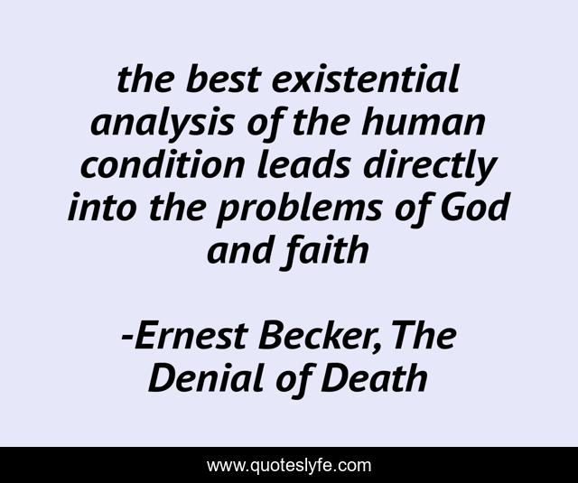 This page presents the quote "the best existential analysis of the human condition leads directly into the problems of God and faith". Author of this quote is Ernest Becker, The Denial of Death. This quote is about existentialism, god, religion,.