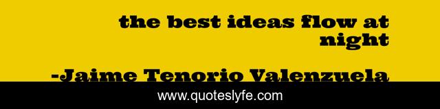 This page presents the quote "the best ideas flow at night". Author of this quote is Jaime Tenorio Valenzuela. This quote is about flow, ideas, best, night,.
