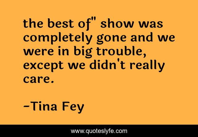 This page presents the quote "the best of" show was completely gone and we were in big trouble, except we didn't really care.". Author of this quote is Tina Fey. .