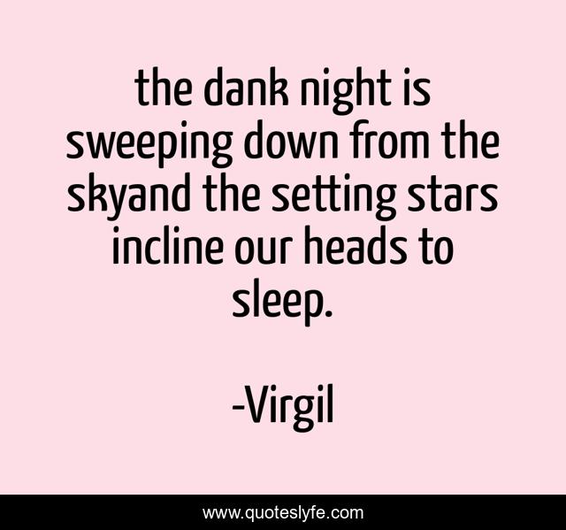 This page presents the quote "the dank night is sweeping down from the skyand the setting stars incline our heads to sleep.". Author of this quote is Virgil. This quote is about trojan, aeneas, myth, greek, troy, virgil, the-aeneid, mythology,.