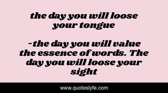 This page presents the quote "the day you will loose your tongue". Author of this quote is the day you will value the essence of words. The day you will loose your sight. .