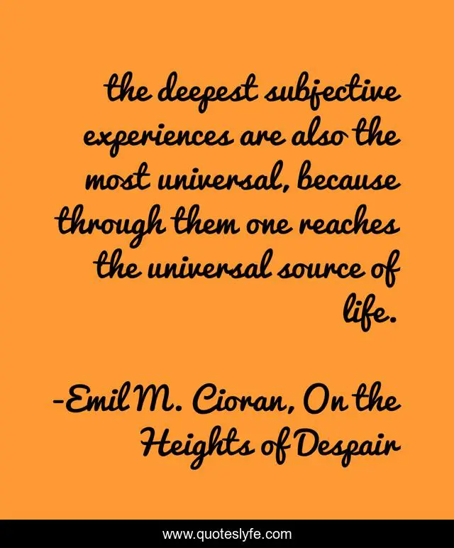 "Emil M. Cioran, On the Heights of Despair Quotes." Quoteslyfe.com, 2025. Fri. 05 Dec. 2025. <https://www.quoteslyfe.com/quote/the-deepest-subjective-experiences-are-also-the-207751>.