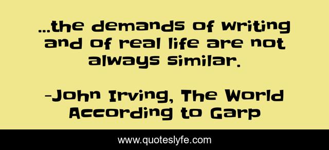 This page presents the quote "...the demands of writing and of real life are not always similar.". Author of this quote is John Irving, The World According to Garp. .