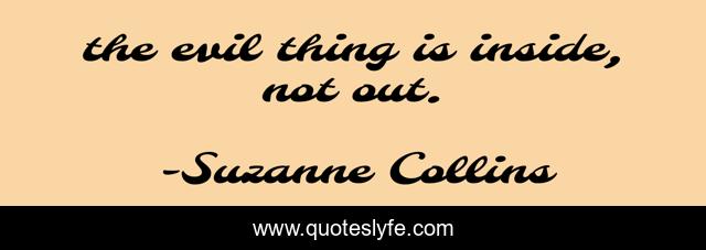 This page presents the quote "the evil thing is inside, not out.". Author of this quote is Suzanne Collins. This quote is about depression, mourning,.