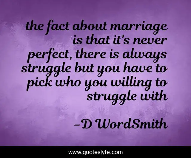 This page presents the quote "the fact about marriage is that it's never perfect, there is always struggle but you have to pick who you willing to struggle with". Author of this quote is D WordSmith. .