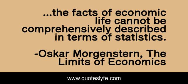 This page presents the quote "...the facts of economic life cannot be comprehensively described in terms of statistics.". Author of this quote is Oskar Morgenstern, The Limits of Economics. This quote is about facts, statistics, economics,.