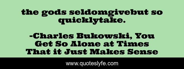This page presents the quote "the gods seldomgivebut so quicklytake.". Author of this quote is Charles Bukowski, You Get So Alone at Times That it Just Makes Sense. This quote is about poem, life, death, love, gods, poetry, christianity, religion, god,.