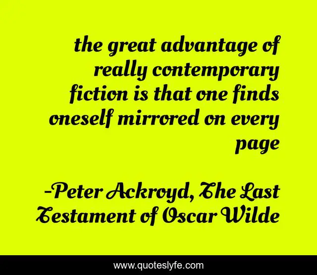 This page presents the quote "the great advantage of really contemporary fiction is that one finds oneself mirrored on every page". Author of this quote is Peter Ackroyd, The Last Testament of Oscar Wilde. .