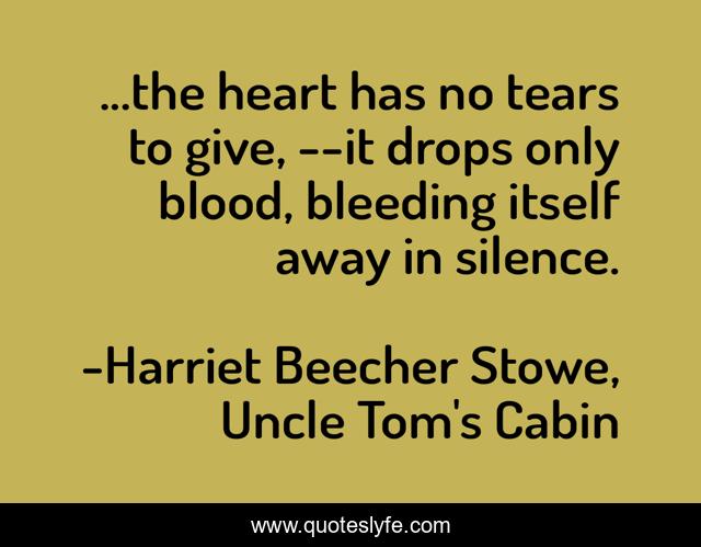 This page presents the quote "...the heart has no tears to give, --it drops only blood, bleeding itself away in silence.". Author of this quote is Harriet Beecher Stowe, Uncle Tom's Cabin. This quote is about sorrow, despair, depression,.