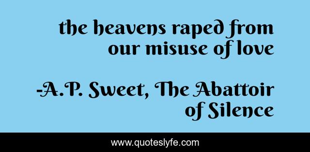 This page presents the quote "the heavens raped from our misuse of love". Author of this quote is A.P. Sweet, The Abattoir of Silence. This quote is about heavens, love, rape, affection,.