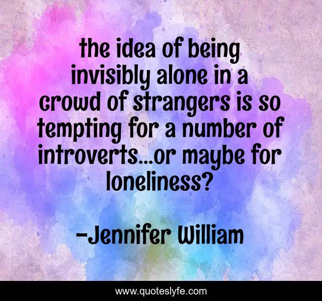 This page presents the quote "the idea of being invisibly alone in a crowd of strangers is so tempting for a number of introverts...or maybe for loneliness?". Author of this quote is Jennifer William. This quote is about loneliness, introversion,.