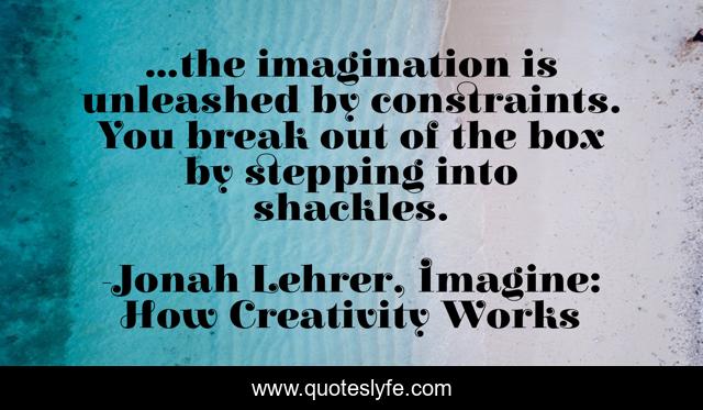This page presents the quote "...the imagination is unleashed by constraints. You break out of the box by stepping into shackles.". Author of this quote is Jonah Lehrer, Imagine: How Creativity Works. This quote is about limitations, imagination, creativity, constraints,.