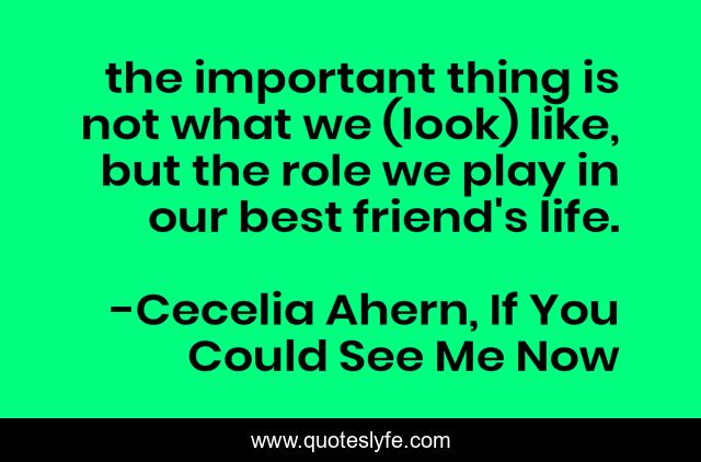 This page presents the quote "the important thing is not what we (look) like, but the role we play in our best friend's life.". Author of this quote is Cecelia Ahern, If You Could See Me Now. This quote is about friends, friendship,.