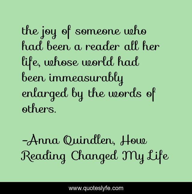 "Anna Quindlen, How Reading Changed My Life Quotes." Quoteslyfe.com, 2025. Sat. 06 Dec. 2025. <https://www.quoteslyfe.com/quote/the-joy-of-someone-who-had-been-66543>.