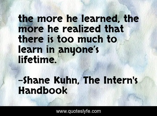 This page presents the quote "the more he learned, the more he realized that there is too much to learn in anyone’s lifetime.". Author of this quote is Shane Kuhn, The Intern's Handbook. This quote is about reading, learning,.