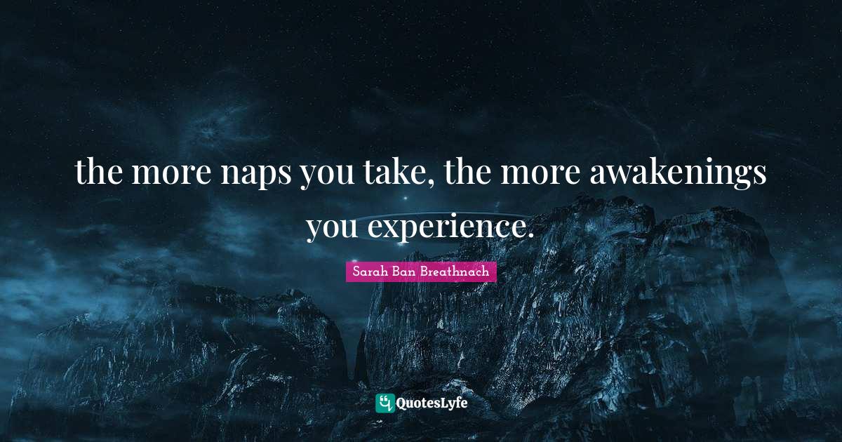This page presents the quote "the more naps you take, the more awakenings you experience.". Author of this quote is Sarah Ban Breathnach. This quote is about sleep, naps, experience, awakening,.