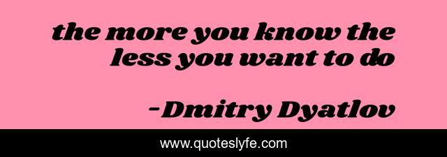 This page presents the quote "the more you know the less you want to do". Author of this quote is Dmitry Dyatlov. This quote is about action, motivation, wisdom,.