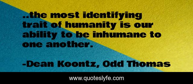 This page presents the quote "..the most identifying trait of humanity is our ability to be inhumane to one another.". Author of this quote is Dean Koontz, Odd Thomas. This quote is about human-nature, life,.
